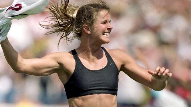 중국과의 경기에서 승부차기 끝에 우승을 차지한 후, 기쁨을 주체하지 못하고 유니폼 상의를 벗어 던진 것이죠. 그녀의 검은 스포츠 브라가 전 세계에 생중계되며 화제를 모았고, 이 장면은 20세기 여성스포츠를 상징하는 사진으로 선정되기도 했습니다.