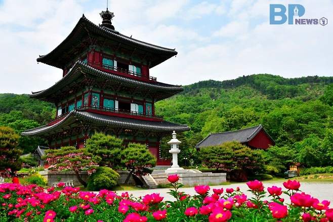 충청북도 진천군 진천읍 김유신길 641에 위치한 보탑사는 신라시대 황룡사 구층 목탑을 모델로 한 목탑 양식 사찰이다.
