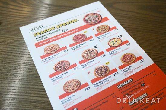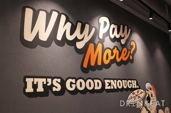 노브랜드 버거와 마찬가지로, 이곳의 슬로건 역시 ‘WHY PAY MORE? IT'S GOOD ENOUGH(왜 돈을 더 내? 이걸로 충분해)’다. 피자 한 판 가격은 14,900원에서 23,900원이다. 해외 브랜드 피자보다 20%정도 저렴한 가격이지만, 크기가 큰 편은 아니다. 피자 한 판의 크기가 12인치로 피자스쿨과 비슷하다. 매일 메뉴가 바뀌는 조각 피자는 모두 2~3천 원대다. 조각 피자는 카운터에서 따로 판매하고 있으며, 포장·배달 주문은 할 수 없다. 사이드 메뉴인 파스타와 브라우니는 모두 7천 원대.