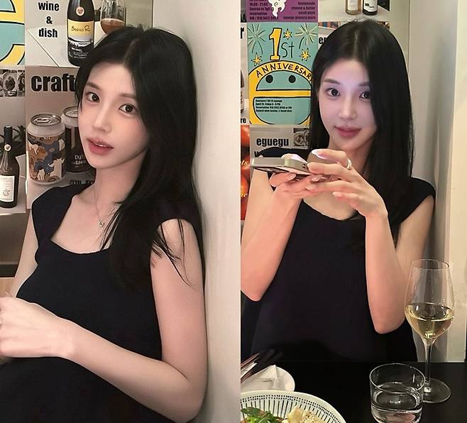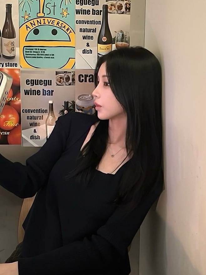 공개한 사진에서 강다은은 여리여리한 몸매가 드러난 슬리브리스 블랙 원피스에 블랙 재킷을 걸친 올 블랙룩으로 시크하면서도 동안 미모를 드러냈다.