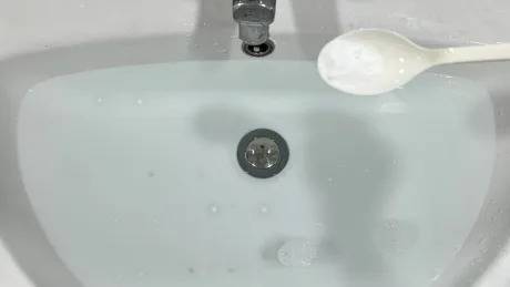 미지근한 물에 베이킹소다를 풀어 담가두기