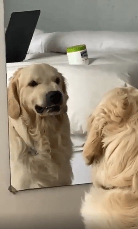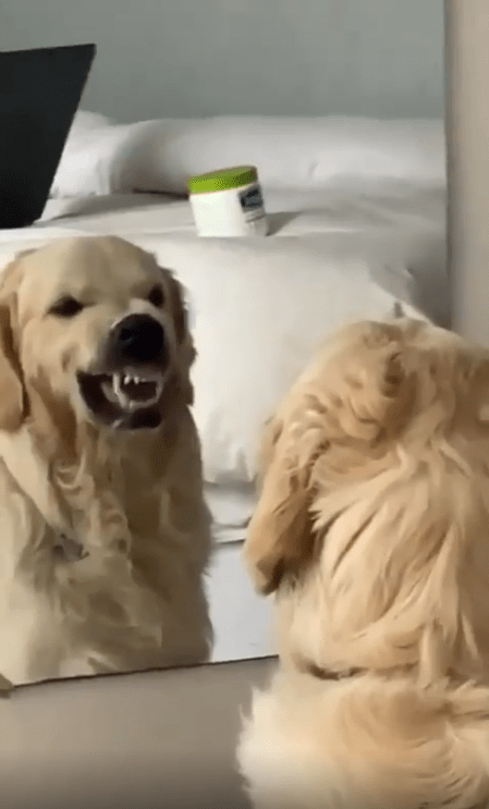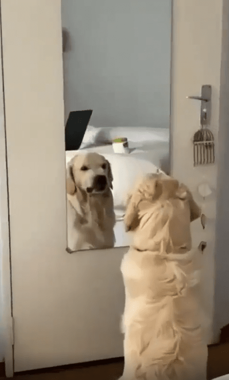 사실 강아지는 거울에 비친 자신의 모습을 인식할 수 없습니다. 하지만 거울 속의 강아지가 자신과 똑같이 반응하는 것을 보고 흥미를 느끼거나, 자기 방어 본능이 발동해 으르렁거리며 반응하기도 합니다. 이 강아지가 거울 앞에서 연습한 행동은 단순히 장난이 아니라 자신을 관찰하고 인식하려는 자연스러운 반응입니다.