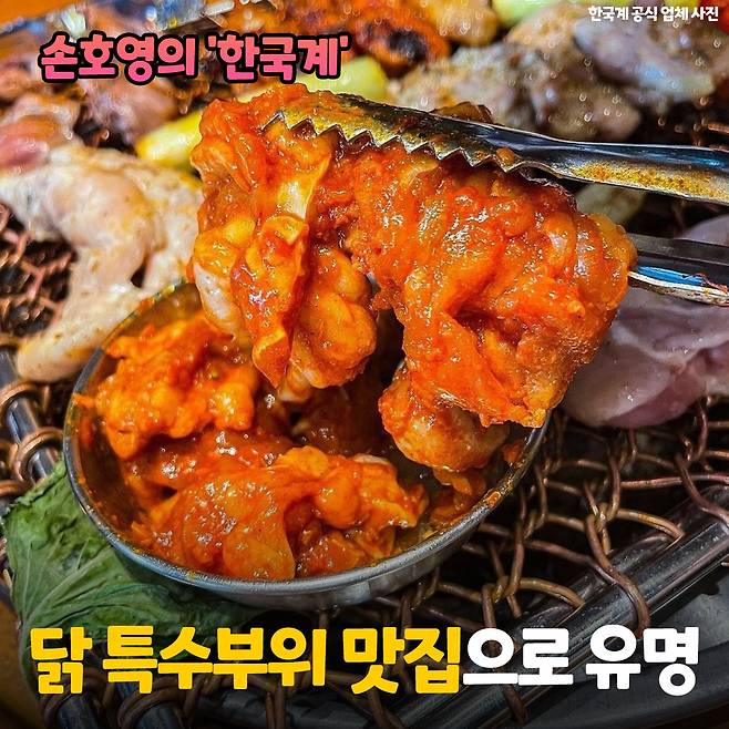 첫 번째는 GOD 멤버 손호영님의 닭 특수부위 맛집 <한국계>입니다! 좌석 배치가 잘 되어 있어서 어느 자리에 앉아도 여유로운 식사가 가능하고, 단체 좌석도 잘 마련되어 있어 근처 직장인들에겐 '인기 회식 맛집'으로 꼽히기도 한다고!!