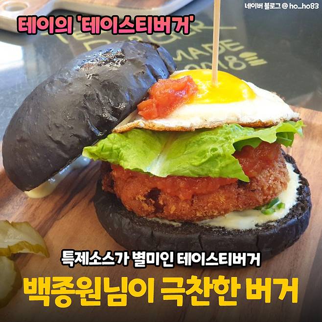 테이스티버거는 테이님이 골목식당에서 선보인 '크라켄버거'와 '에그마니버거'를 맛본 백종원 대표가 수제버거 런칭을 적극적으로 추천해서 오픈된 것이라고 해요.