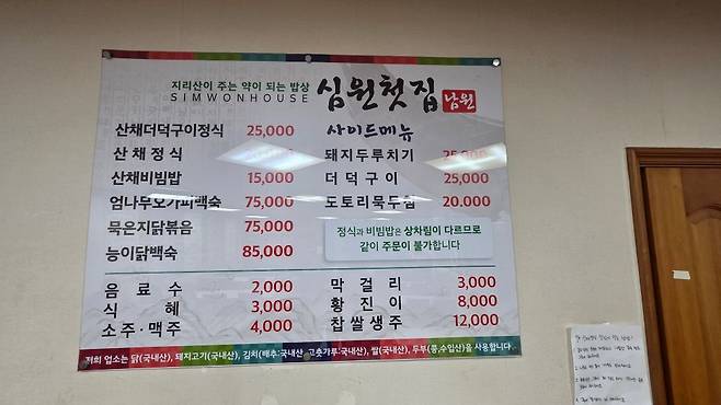전북 남원시 모정길, 남원대교 인근에 자리한 심원첫집은 남원 지역을 대표하는 산채정식 맛집입니다. 20여 가지가 넘는 다양한 산나물과 정성 가득한 한 상 차림으로 미식가들의 발길을 사로잡고 있다고 해서 찾아봤습니다.