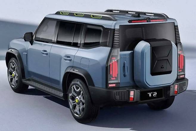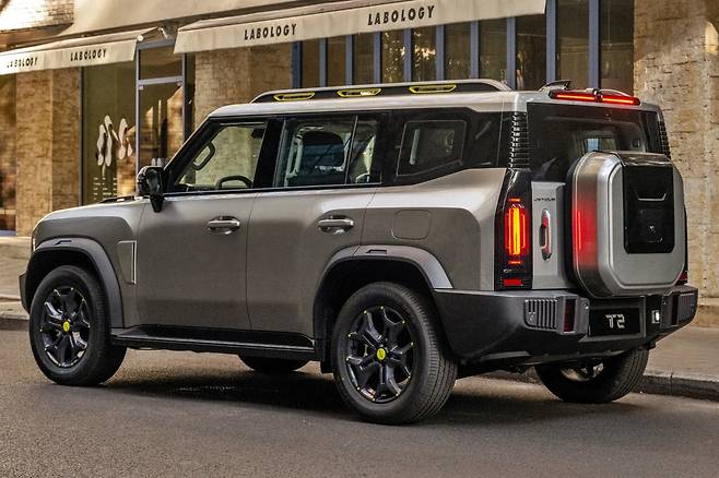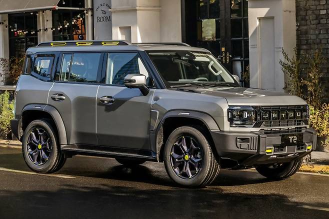 제투어 T2는 지난해 체리자동차 산하 브랜드 제투어에서 내놓은 정통 SUV로, 각진 외관과 전반적인 디자인이 디펜더를 연상케 한다. 전면은 그릴 부분에 빛나는 제투어 영문 레터링이 존재감을 과시하며, 측면은 직선으로 각을 맞춘 박스형 디자인과 오버 휀더가 눈에 띈다. 후면에는 정통 SUV를 상징하는 스페어타이어가 있다.