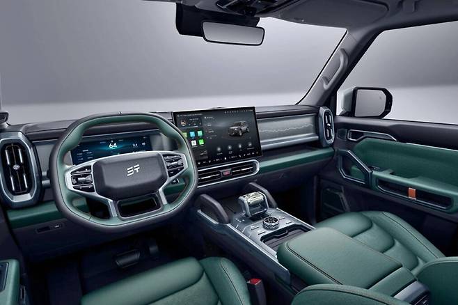 실내 디자인 역시 직선 위주로 디자인되어 있어 정통 SUV에서 볼 수 있는 투박함을 갖췄다. 운전석에는 10.25인치 풀 디지털 계기판이, 센터패시아에는 15.6인치 대화면 디스플레이가 장착되어 있다. 퀄컴 스냅드래곤 8155 CPU를 탑재해 빠른 구동이 가능하다.