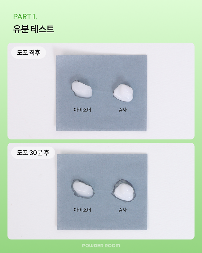 오 확실히 장수진 수분 크림이 유분 적게 나온 거 보이지?