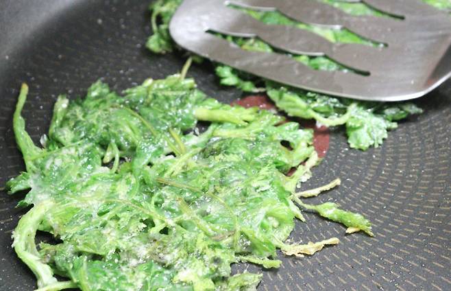 팬을 달굴 때 식용유만 쓰지 말고 식용유와 들기름을 1:1 비율로 섞어서 사용해 보세요. 들기름의 고소함이 쑥의 쌉싸름한 맛을 고급스럽게 감싸줍니다. 또한 들기름의 오메가-3 성분은 쑥의 지용성 비타민 흡수를 돕고 혈관을 맑게 하는 시너지 효과를 냅니다.