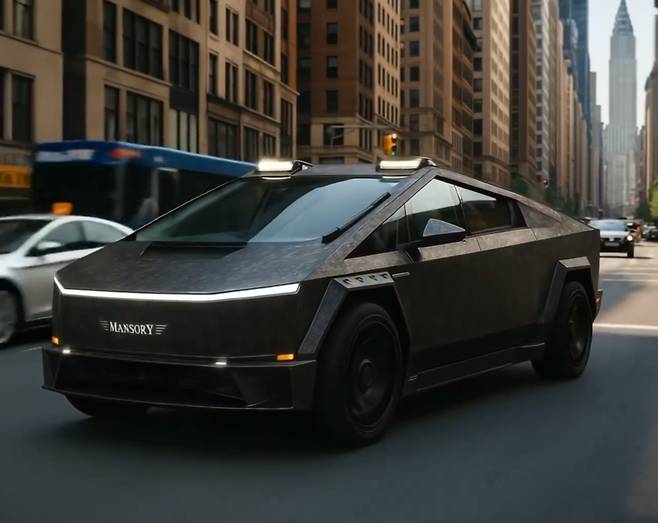 글로벌 자동차 튜닝 전문 업체 만소리(Mansory)가 공개한 풀 카본 사이버트럭은 카본 파이버 대신 조악한 포지드 카본(forged carbon) 마감한 모습을 확인할 수 있다.