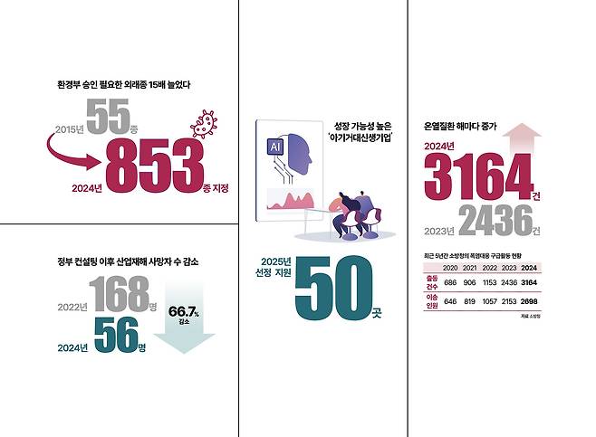 국내 생태계에 위험을 미칠 수 있는 '유입 주의 생물'로 지정된 종이 10년 새 15배 이상 증가했습니다. 성장 가능성이 높은 '아기거대신생기업' 50개사가 선정됐고, 지난해 온열질환 구급출동 건수는 최근 5년 중 최고치를 기록했습니다. 자세한 내용은 정책주간지 'K-공감'을 확인하세요.