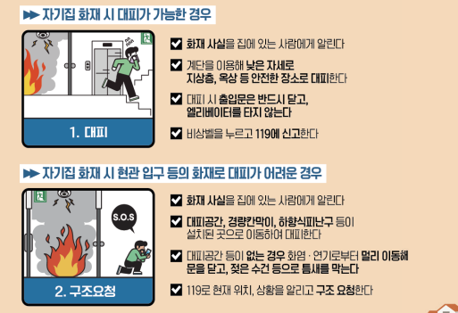 자기 집에서 불이 났을 땐 현관을 통해 대피할 수 있다면
