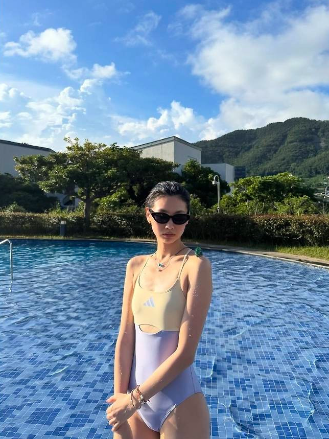 앞면 컷아웃 디테일로 포인트를 준 스윔웨어는 스포티하면서도 감각적인 실루엣을 연출하며, 정호연의 군살 없는 몸매와 매끈한 비율을 더욱 부각했습니다.