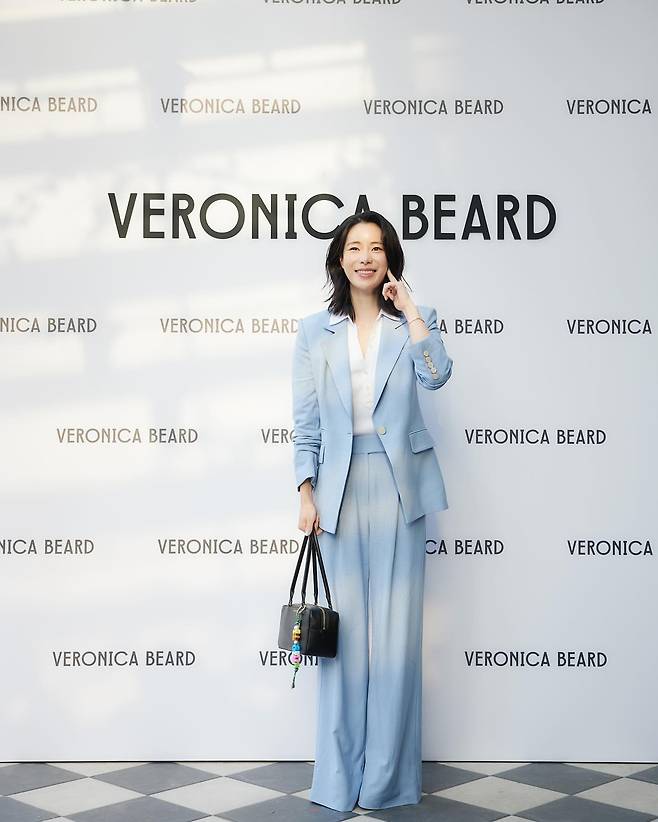 배우 임지연의 블루 수트룩을 살펴보겠다. 임지연은 밝은 하늘색의 오버사이즈 수트와 화이트 셔츠를 매치해 세련된 포멀룩을 연출하고 있다. 여유로운 실루엣의 팬츠와 재킷이 트렌디하면서도 클래식한 분위기를 자아내며, 블랙 핸드백으로 포인트를 더했다. 전체적으로 단정하면서도 산뜻한 이미지가 돋보인다.