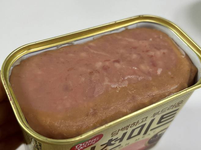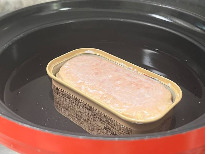 스팸은 뜨거운 물에 잠시 담가둔 후 빼면 지방 성분이 녹아 쉽게 꺼낼 수 있습니다.