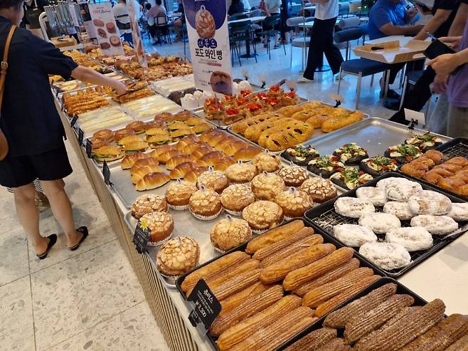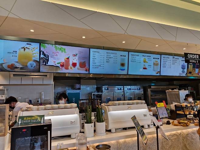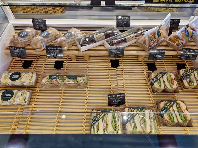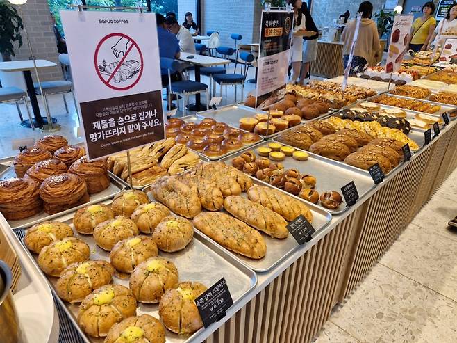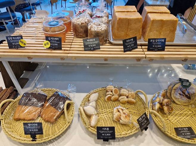 우린 3명이 빵 4가지 정도를 고르고 음료 3가지를 주문했는데 5만원 넘게 나왔다. 조금 비싼 편이다. 음료가 다른 카페보다 비싸다. 커피의 경우 스타벅스보다 거의 두 배 가까이 비싸다. 관람료가 음료에 포함되어 있다고 보면 된다.