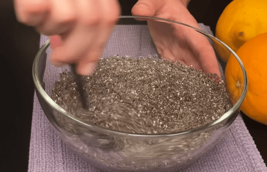 식사 전날 치아씨드를 미리 물에 담가놓고 부드럽게 만들기