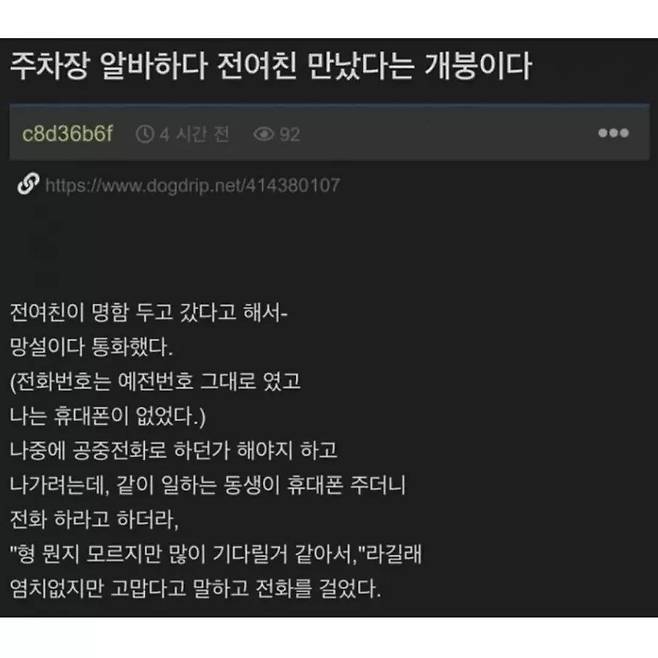 사업하다 망해서 주차장 알바하는데 전 여친만남..
