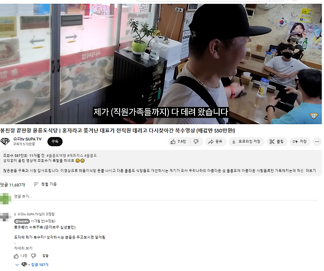 2022년 유투브에서 무려 조회수 590만 회를 기록한 "불친절 끝판왕 울릉도식당"이라는 울릉도 여행 영상의 한 장면입니다.