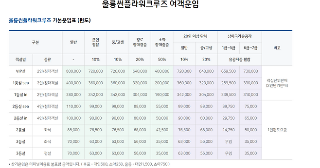 울릉도 여객 운임은 등급에 따라 상이하지만 현재 일반실 편도 기준 7~8만원 수준으로, 코로나 이전 일본·동남아 지역 항공권 특가운임과 비슷합니다. 과거 덤핑이 만연했던 중국시장 개방에도 시선이 모이고 있습니다.