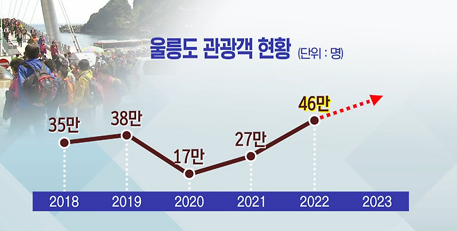 한 여행사 관계자는 "지난해에는 3월부터 11월까지 울릉도 예약이 꾸준히 들어왔는데 올해 하반기에는 예약이 크게 줄었다"라며 "코로나 기간 동안 국내여행이 반짝 호황을 누렸다지만 해외여행이 어려운 상황에서의 일시적 현상이었을 뿐, 당장 이번 하반기부터 대책을 마련해야 한다고 본다"고 피력했습니다.