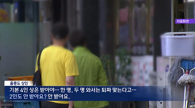 한 울릉도 상인은 "기본 4인상은 받아야...한 명, 두 명 와서는 퇴짜 맞는다고..." 현지 상황을 전했습니다. 실제 MBC 취재진이 방문한 식당 7곳 중 3곳이 1인 손님을 거부했습니다.
