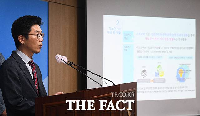 [더팩트ㅣ세종=이동률 기자] 윤성훈 과학기술정보통신부 기초연구진흥과장이 15일 오전 세종시 정부세종청사에서 기초연구과제 신규과제 선정결과를 발표하고 있다.