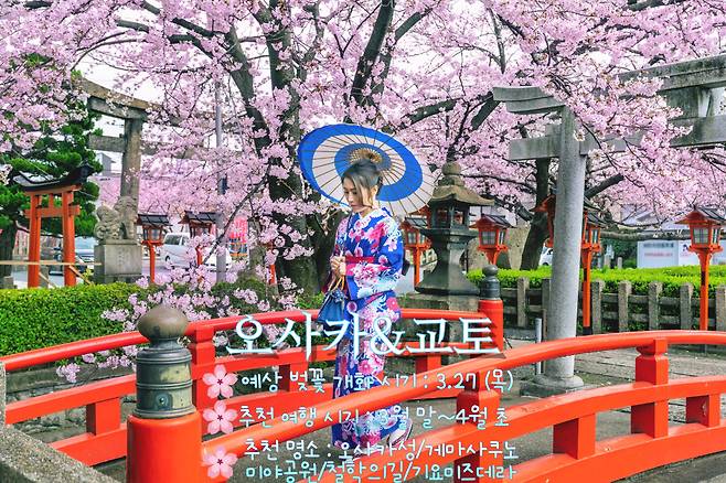 우리나라 사람이 일본 여행 중 가장 많이 간다는 오사카 벚꽃 개화시기는 3월 27일입니다. 교토 또한 같은 날짜인데요. 다만, 오사카는 4월 초순에 만개하고 교토는 그보다 살짝 늦은 6~7일 사이 만개할 것으로 보입니다.