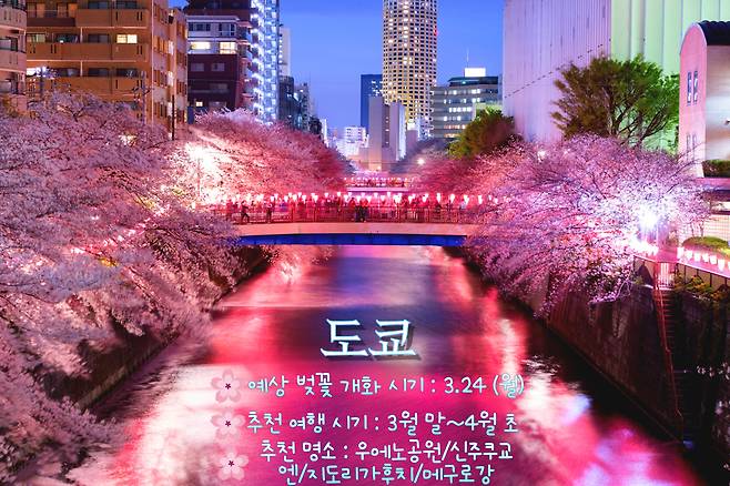 2025년 도쿄의 벚꽃 개화시기는 3월 24일로 예상되며, 만개 시기는 4월 초 경으로 보고있습니다. 일본의 수도이자 거대 도시인 도쿄에서는 도심 곳곳에서 벚꽃을 즐길 수 있는데요.
