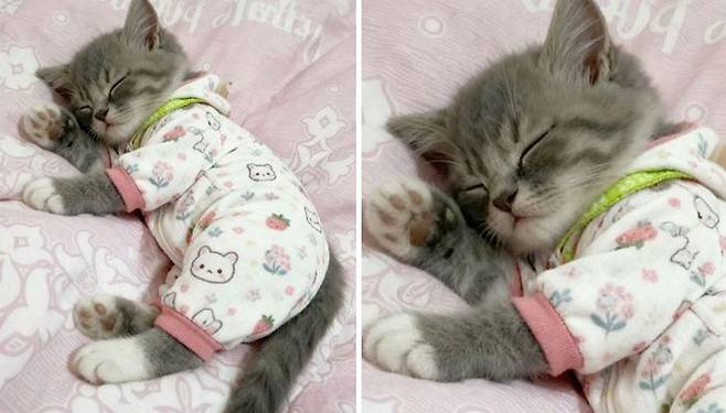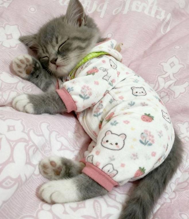 팔은 좀 짧아도, 잠옷 입고 꿈나라 가는 모습은 완벽 그 자체!