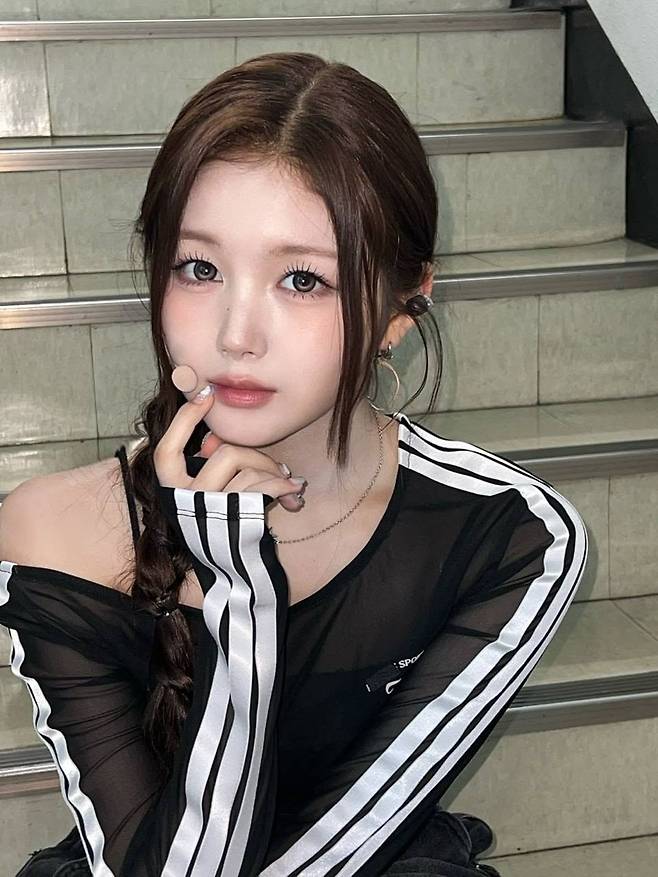 주빈은 블랙 시스루 톱에 화이트 스트라이프가 포인트로 들어간 스포츠 스타일의 상의를 매치해 시선을 집중시켰다. 어깨가 드러나는 오프숄더 디자인은 은은한 섹시미를 더하며, 슬림한 실루엣과 투명한 소재가 그의 여리여리한 분위기를 극대화했다. 머리는 한쪽으로 땋은 브레이드 스타일로 연출해 귀여움과 시크함을 동시에 살렸다.