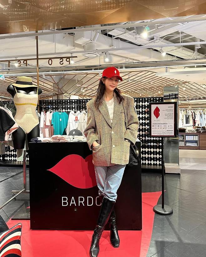 장예원은 클래식한 체크 블레이저에 베이스볼 캡을 매치했다. 강한 패턴의 블레이저는 자칫 포멀해 보일 수 있지만, 빨간색 캡이 경쾌한 균형을 잡아준다. 여기에 데님 팬츠와 롱부츠를 더해 클래식하면서도 트렌디한 룩을 완성했다. 전체적으로 중성적인 요소를 활용했지만, 실루엣과 컬러 조합을 통해 세련된 여성미가 돋보인다.