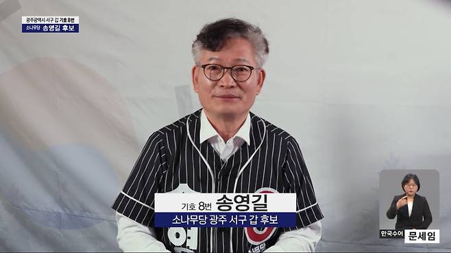 | ▲ 지난 4일 방송된 송영길 소나무당 광주서구갑 후보 연설. |