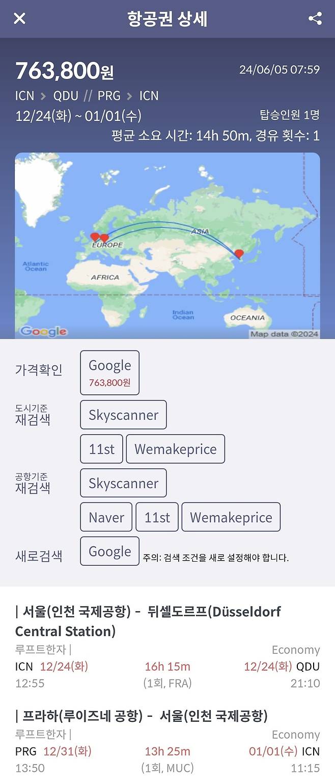 여기서도 뒤셀도르프에서 프라하로 lcc로 편도로 찾아보니 1시간 걸리고 대략 18 만원 선입니다