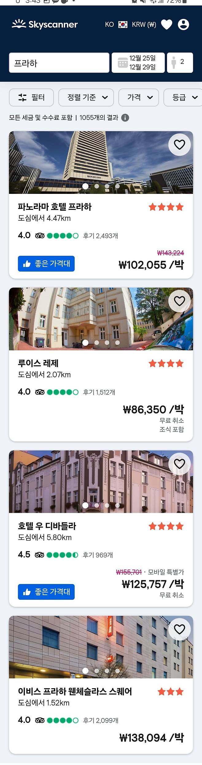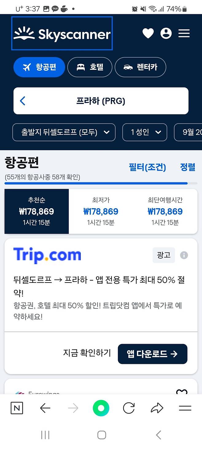 동일한 구간도 스카이스캐너와 구글플라이트가 다른 가격을 보여주는데 항공권은 호텔 대비 조건이 대동소이 하니 두 플랫폼 모두 비교해서 검색하시면 더 좋을듯합니다.