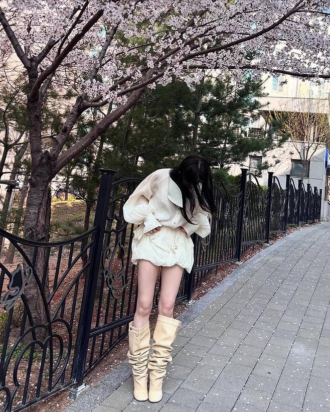 #이채연패션 #벚꽃룩 #봄코디 #점프수트룩 #셔링부츠 #스타패션 #K스타패션 #이채연OOTD #봄패션트렌드
