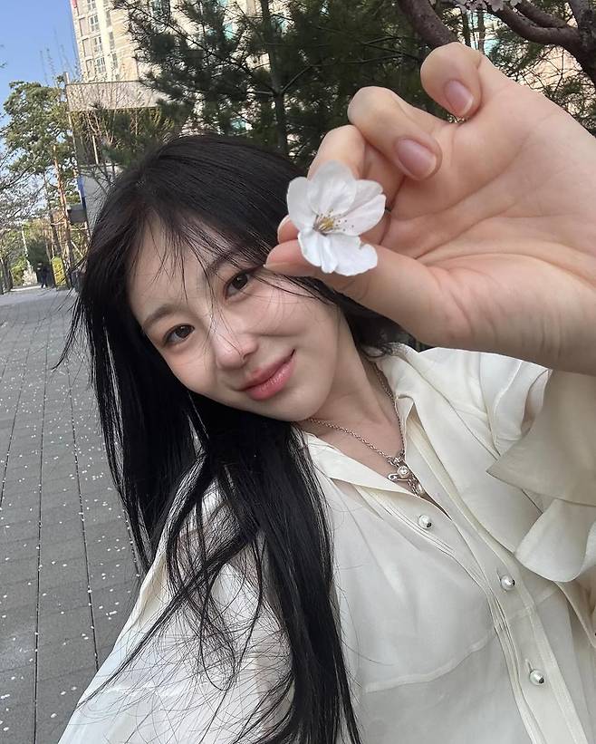 벚꽃이 만개한 봄날, 이채연이 인스타그램을 통해 공개한 벚꽃 인증샷이 패션 팬들의 시선을 사로잡고 있다. “벚꽃 지기 전에 후다닥”이라는 짧은 멘트와 함께 올린 이번 게시물은 단숨에 봄날 스타일의 정석을 보여주는 듯한 착장으로 주목받았다.