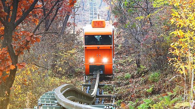 조용한 숲길을 천천히 오르며 창밖으로 붉게 타오른 단풍을 감상하다 보면, 그동안 쌓인 피로도 어느새 사라진다.