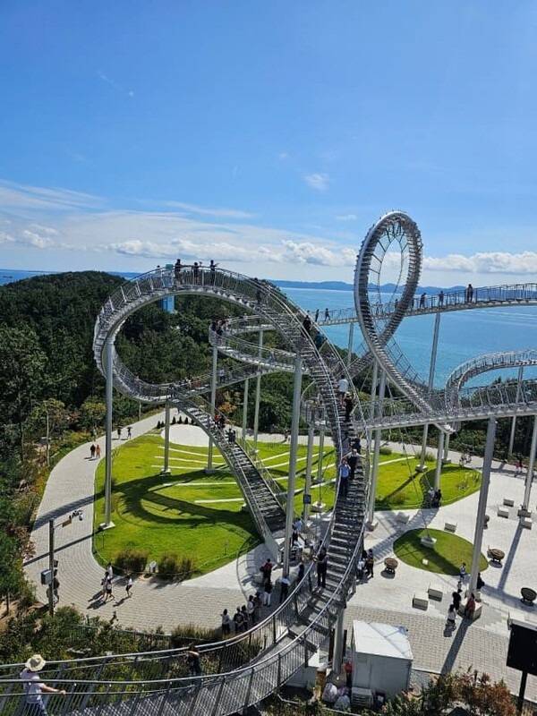 포항의 새로운 랜드마크로 떠오른 환호공원 스페이스워크는 하늘을 걷는 듯한 짜릿한 경험을 선사합니다. 높이 25m, 길이 333m의 철제 구조물로, 계단을 따라 올라가면 포항 시내와 영일만, 포스코 제철소를 한눈에 내려다볼 수 있습니다.