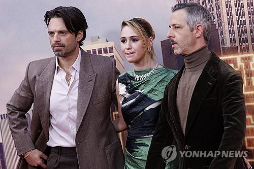 epa11660872 (L-R) Romanian-American actor Sebastian Stan, Bulgarian actor Maria Bakalova, and US actor Jeremy Strong pose at the premiere of the film 'The Apprentice' during the BFI London Film Festival at Royal Festival Hall, in London, Britain, 15 October 2024. The 68th edition of the annual film festival runs from 09 to 20 October 2024. EPA/TOLGA AKMEN