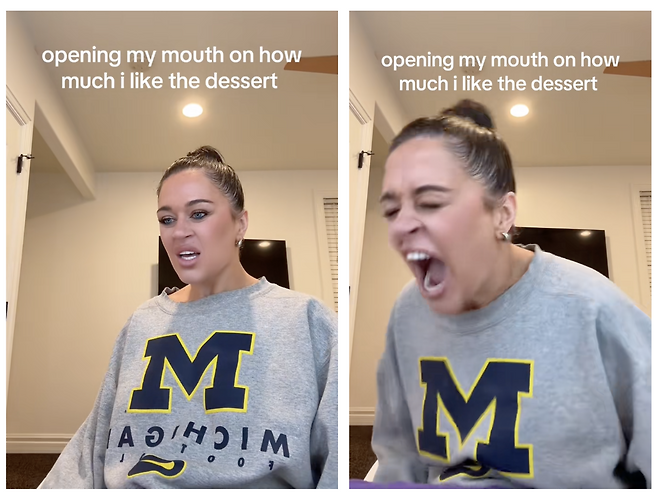 그 디저트를 좋아하는 만큼 입을 벌리는