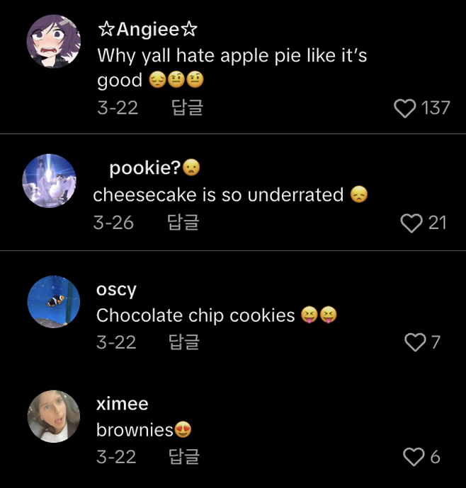 틱톡 사용자들이 이 음원에 나오는 디저트를