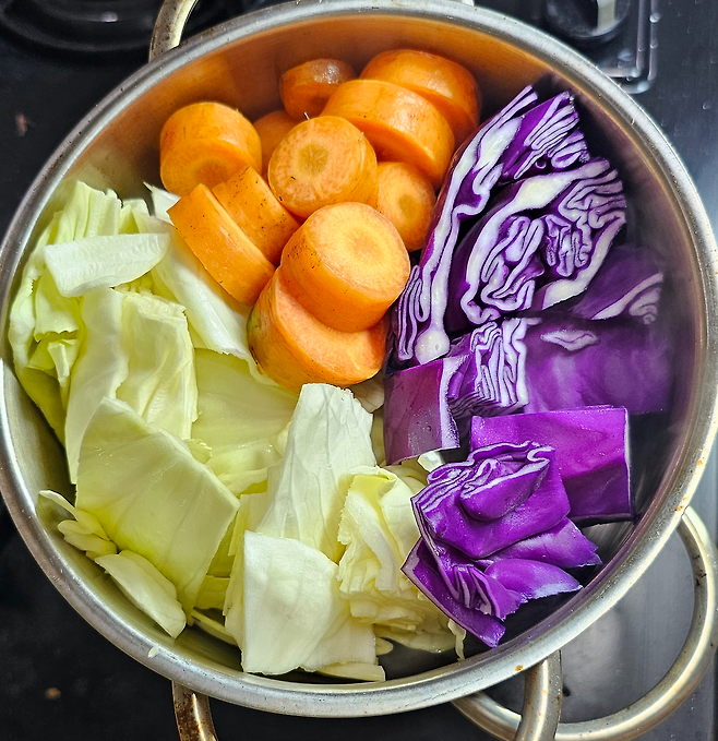베타카로틴이 풍부해서 체내 비타민 A로 전환되고, 피부와 점막 건강을 지켜줘. 양배추의 식이섬유와 함께 장 운동을 부드럽게 도와 소화 흡수를 최적화해.