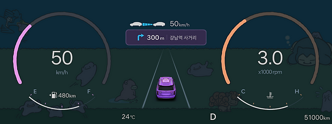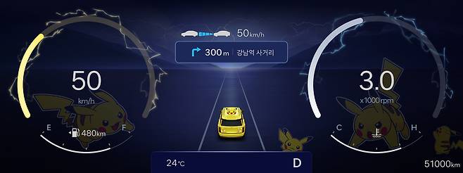 이번 테마는 포켓몬 디자인을 ccNC 인포테인먼트 클러스터 디스플레이 전반에 적용한 것이 특징이다. 계기판 색상과 그래픽, 내비게이션 운행 정보, 시동 온·오프 시 구현되는 애니메이션 등 다양한 요소에 포켓몬 감성을 담아, 이동의 여정을 하나의 스토리로 완성했다.