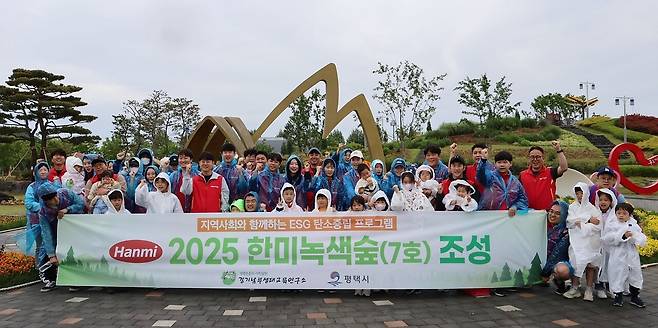 사회적 책임(S)뿐 아니라 환경(E) 분야에서도 한미그룹의 ESG 실천은 구체적인 성과로 나타나고 있다. 지난 5월 24일에는 평택시와 협력해 도심 생물다양성 보전과 탄소중립을 위한 ‘한미녹색숲 7호’를 조성했다. 평택시 농업생태원에서 진행된 이 행사에는 한미사이언스와 한미약품 임직원 및 가족 등 70여 명이 참여해 꼬리명주나비 유충의 먹이식물인 쥐방울덩굴 등 총 800여 그루의 나무를 심었다. 한미그룹은 2021년부터 평택시의 시민 참여형 녹지 확충 사업인 '참여의숲' 조성에 동참해왔다.