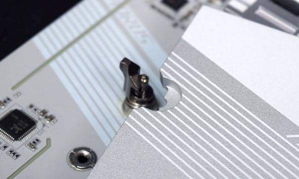 그래픽 카드 슬롯에도 PCIe 이지 래치 디자인을 적용하여 백플레이트가 달린 커다란 그래픽카드를 장착해도 위에서 누를 수 있도록 손잡이 부분을 옆에서 누를 수 있어 편리하다.
