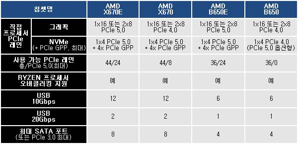 소켓 AM5 지원 AMD 600 시리즈 메인보드 칩셋 가운데 B650E는 메인스트림급 B650과 달리 CPU에서 PCIe 5.0 레인을 가져와 PCIe 5.0 그래픽 카드와 NVMe M.2 SSD를 사용할 수 있다.