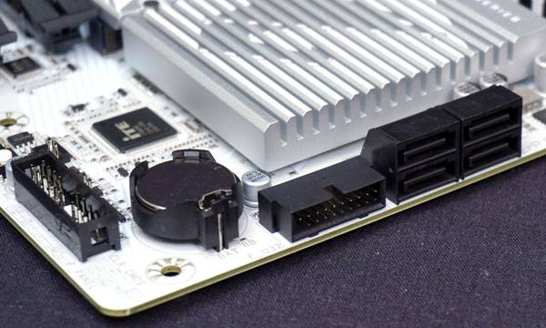 AMD B650E/B650 칩셋의 SATA 포트 지원 갯수가 4개로 줄면서 B650E 어로스 엘리트 X도 4개의 SATA 6Gbps 커넥터를 제공한다. NVMe와 마찬가지로 SATA 스토리지를 통해서도 RAID 0, 1, 10 구성을 할 수 있다. 또한 메인보드 내부의 확장 헤더 형태로 USB 3.2 Gen2x2 Type-C 포트 1개와 USB 3.2 Gen1 포트 2개, USB 2.0/1.1 포트 4개를 추가할 수 있다.