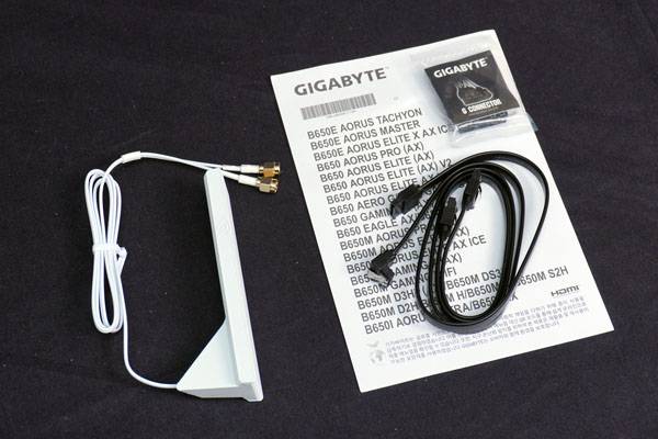 기가바이트 B650E 어로스 엘리트 X AX ICE 제이씨현 구성품으로는 메인보드와 사용자 설명서, SATA 케이블 2개, Wi-Fi 초고속 안테나, G 커넥터 등이 들어가며, 기가바이트 국내 공식 수입사인 제이씨현으로부터 3년 무상 보증을 받을 수 있다.