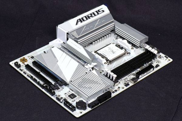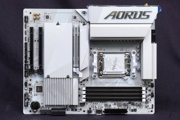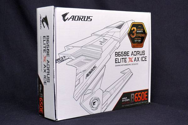 기가바이트의 어로스 게이밍 브랜드를 기반으로 PCB와 히트싱크까지 모두 화이트 색상을 적용한 독특한 외형 때문에 화이트 감성의 라이젠 PC를 만들고 싶은 사람에게도 추천할만한 메인보드다. 기존에 출시된 mATX 규격의 B650M 어로스 엘리트 AX ICE와 달리 305 x 244mm 크기의 ATX 폼 팩터로 만들어져 시스템 확장성이 좋다.